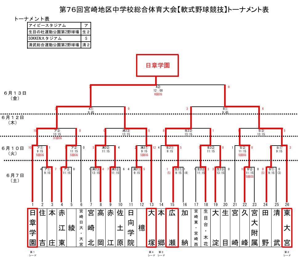 6月7日から宮崎地区で開催された「第76回宮崎地区中学校総合体育大会(軟式野球競技)」の結果です。
