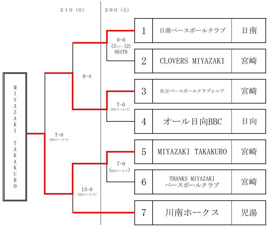 9月20.21日に宮崎市で開催された「第49回宮崎県中学校秋季体育大会(軟式野球競技)クラブチーム代表決定戦」の結果です。