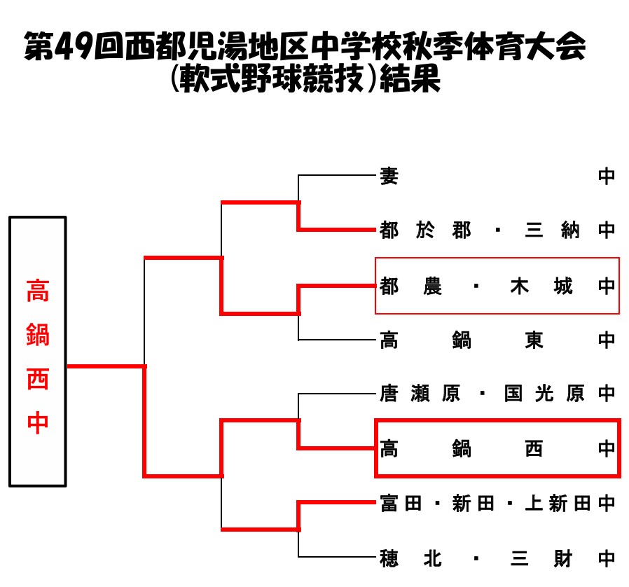 9月27.28日に西都児湯地区で開催された「第49回西都児湯地区中学校秋季体育大会(軟式野球競技)」の結果です。