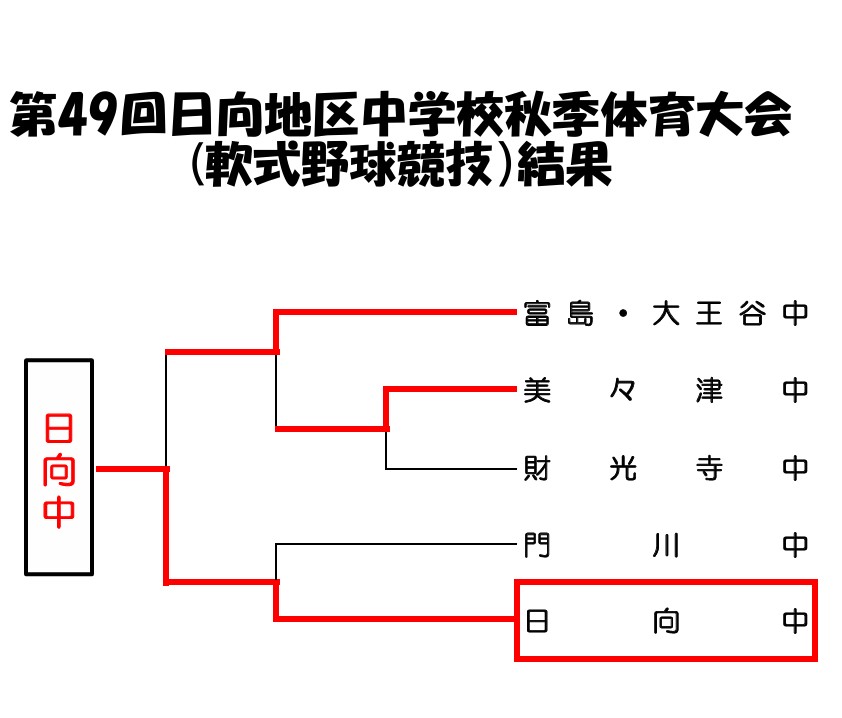9月27.28日に日向地区で開催された「第49回日向地区中学校秋季体育大会(軟式野球競技)」の結果です。