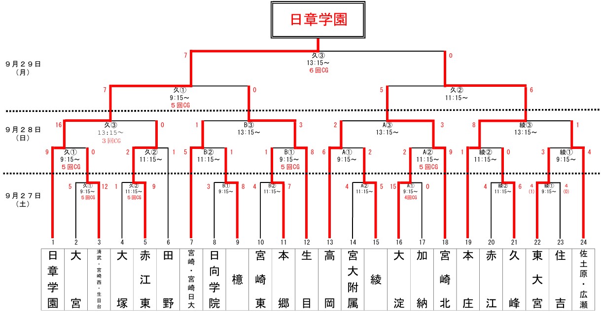 9月27.28.29日に宮崎地区で開催された「第49回宮崎地区中学校秋季体育大会(軟式野球競技)」の結果です。