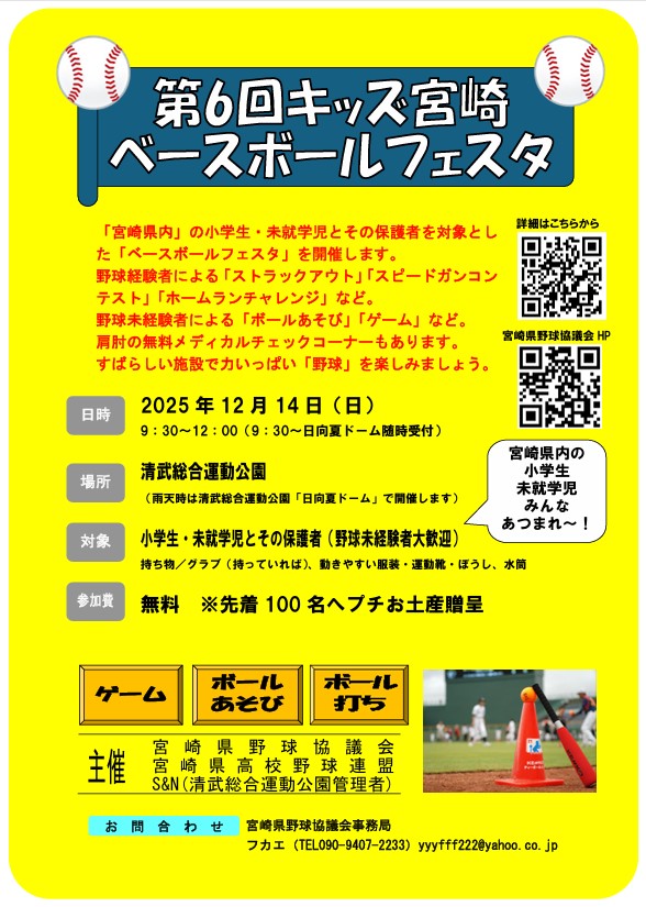「第6回キッズ宮崎ベースボールフェスタ」