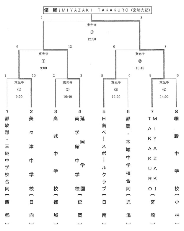 10月12.13日に日南市で開催された「文科大臣杯第17回全日本少年春季軟式野球大会ENEOSトーナメント宮崎県予選会」の結果です。