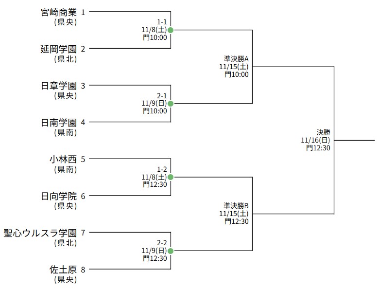 【高校】 「第52回宮崎県高等学校1年生野球大会」組み合わせ owner 9時間 ago 11月8日から門川野球場にて開催される「第52回宮崎県高等学校1年生野球大会」の組み合わせです。 出場チームのご健闘をお祈りいたします。