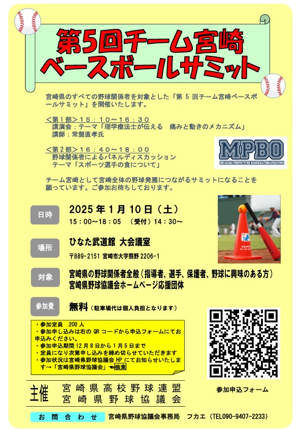 【MPBO】 イベント開催案内「第5回チーム宮崎ベースボールサミット」