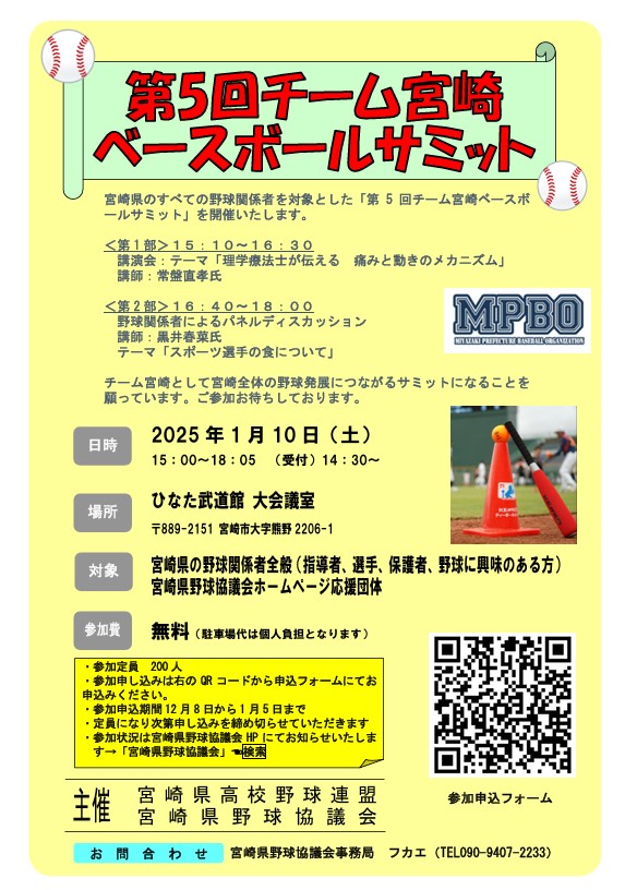 【MPBO】 イベント開催案内「第5回チーム宮崎ベースボールサミット」