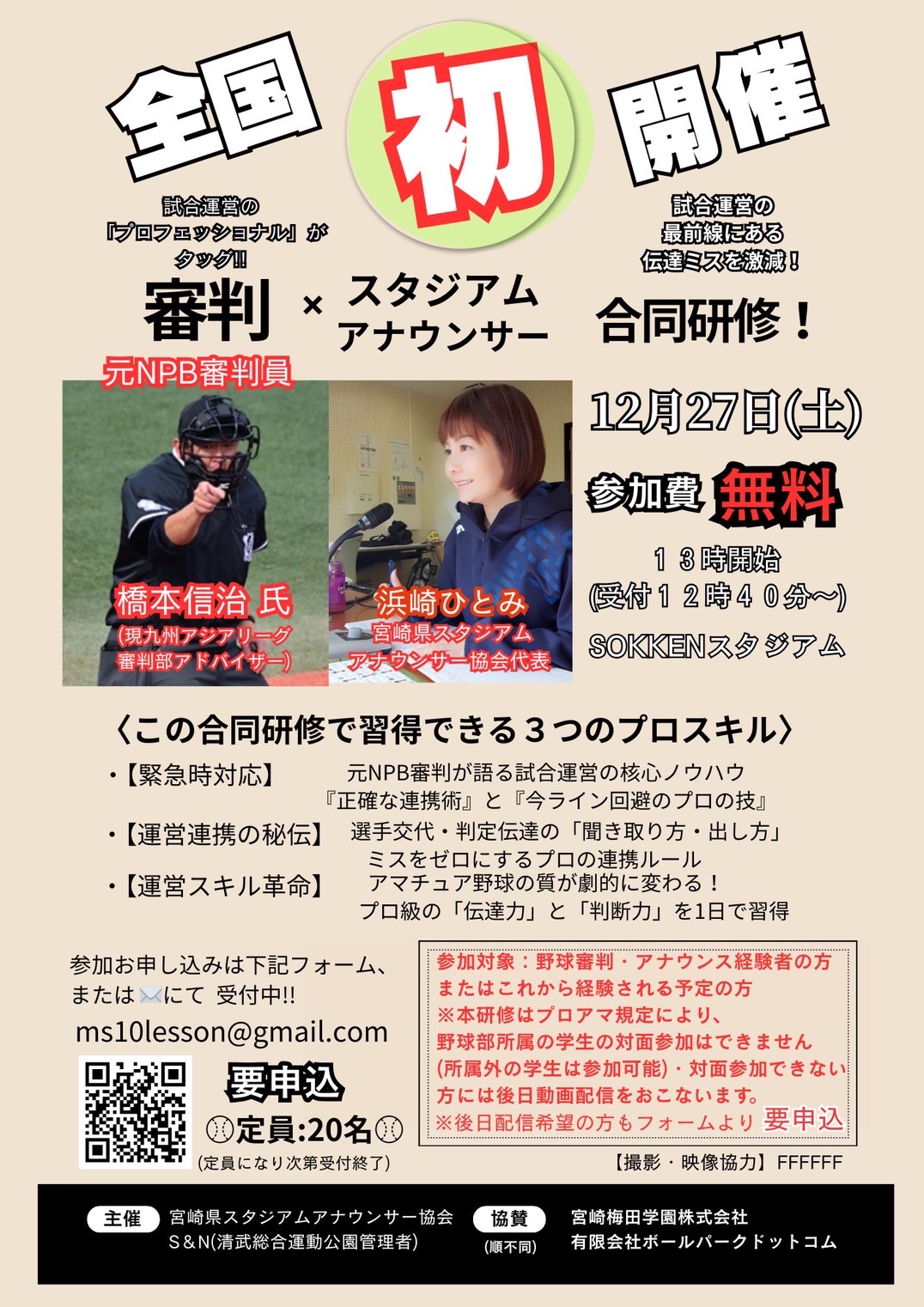【スタアナ】 全国“初”開催! 野球の試合運営を支える 審判 × スタジアムアナウンサー合同研修 『プロが教える進行力・伝達力』