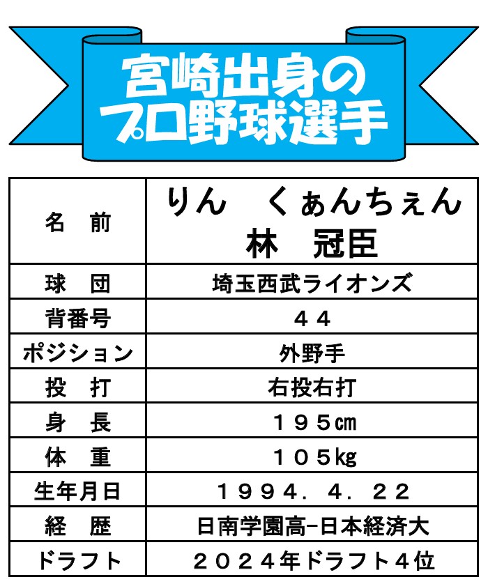 「宮崎県野球協議会」は、宮崎出身のプロ野球選手を応援します。