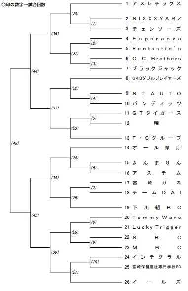 2月22日から宮崎市で開催される「令和8年みやざき県民総合スポーツ祭(一般軟式野球競技)宮崎地区予選」の組み合わせです。