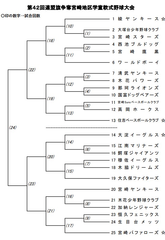 2月28日から宮崎市で開催される「第42回連盟旗争奪宮崎地区学童軟式野球大会」の組み合わせです。